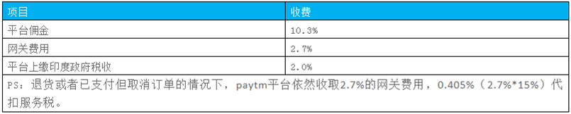 Paytm平臺(tái)不分品類(lèi)收取統(tǒng)一15%的費(fèi)用,包括平臺(tái)傭金、網(wǎng)關(guān)費(fèi)用及印度稅收三個(gè)方面,具體如下: